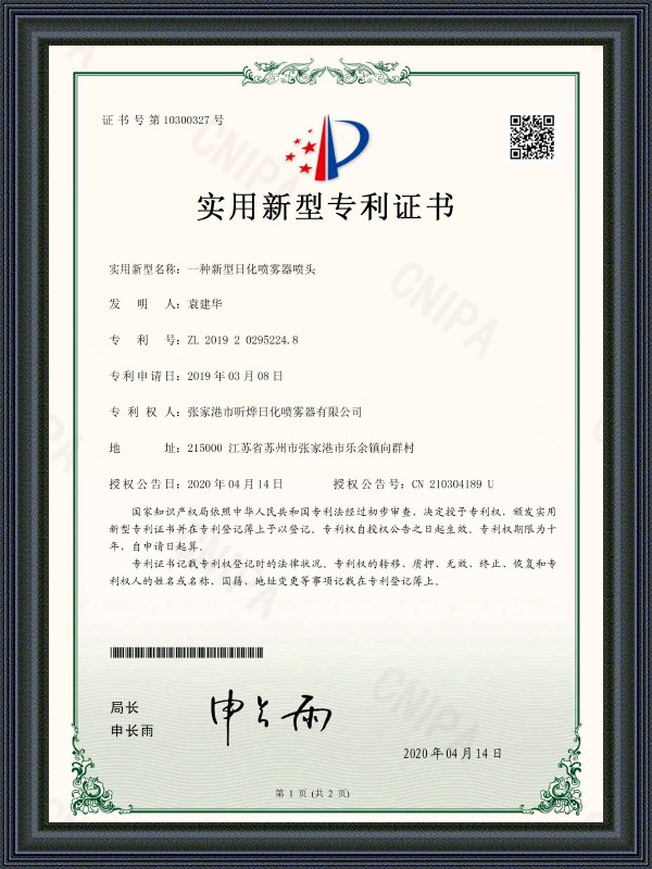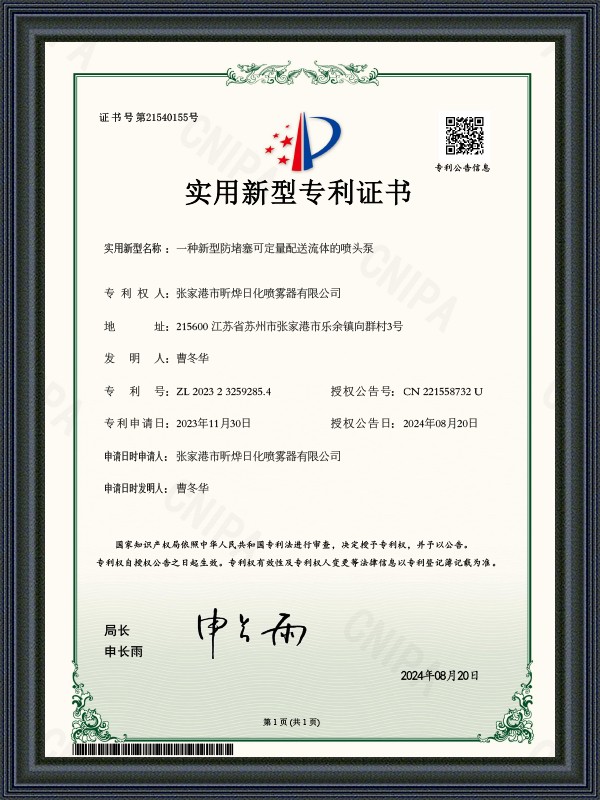 Zhangjiagang XinYe Chemical Sprayer Co., Ltd. was founded in the year of 2006. The company has three production base: ①Zhangjigang headquarters ②Zhangjiagang branch ③Huaian branch; Totally covers 100,000 square meters and 250,000 square meters construction areas .It is a company with strong technical force,with more than 600 employees, including 60 senior maragers and nearly 100 quality managements and technology development staff.